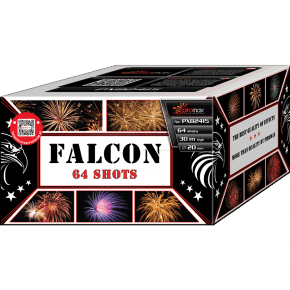 Bateria Falcon PXB2415 to produkt marki Piromax. Zawiera 64 strzały kalibru 20 mm. Układ efektów pionowy z rozkładem kompozycji na pułapie około 30 metrów. Czas efektu wynosi ok. 65 sekund.