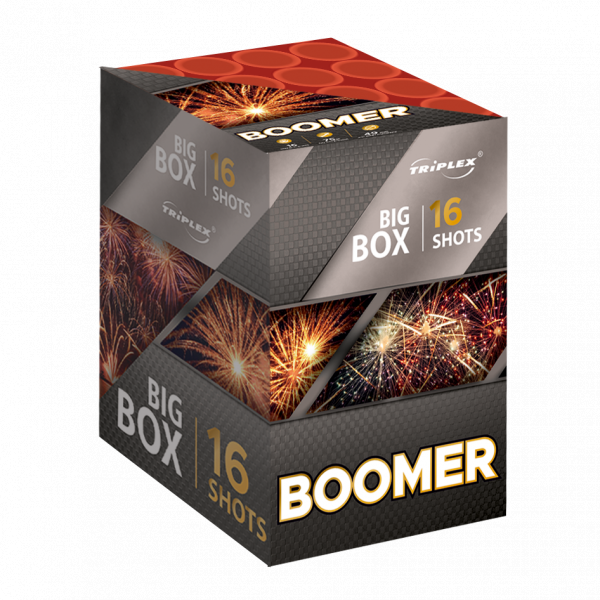 16 - strzałowa wyrzutnia Boomer TXB702 zawiera wyłącznie potężne ładunki o kalibrze 48 mm, które prezentują zmienne kolorystycznie kompozycje na bardzo wyskim pułapie. Czas prezentacji wynosi około 30 sekund. Produkt posiada certyfikat CE klasy F3.