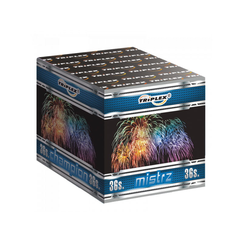 36 - strzałowa wyrzutnia Champion (kod: TXB073) od dystrybutora pirotechniki "Triplex" charakteryzuje się dużym rozmachem kopozycji.