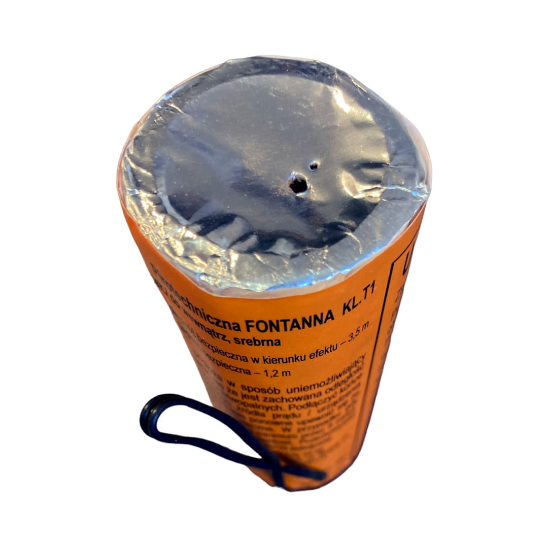 Fontanna sceniczna z zapalnikiem elektrycznym (kod produktu: F3S15), która emituje snop srebrnych iskier na wysokość do 3 metrów w czasie 15 sekund.