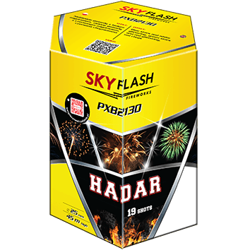 19 - strzałowa wyrzutnia PXB2130 "Hadar" strzelająca pionowo od producenta "Piromax". Przeważającą kompozycją tego produktu są brokatowe opadające korony. Kaliber ładunków o średnicy 25 mm pozwala efektom wznosić się na pułap około 40 metrów w czasie ok. 20 sekund.