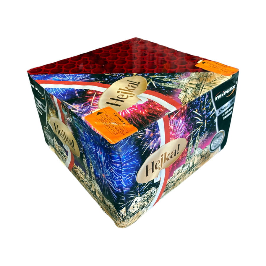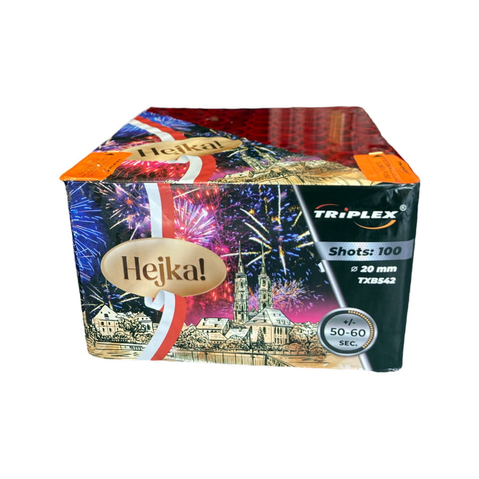 Bateria fajerwerków Hejka! TXB542 od importera Triplex zawiera 100 strzałów małego kalibru i charakteryzyje się pionowym układem strzelania. Prezentuje bardzo dynamiczną sekwencję strzałów o srebrnej kolorystyce z trzeszczącą cracklingową chryzantemą.