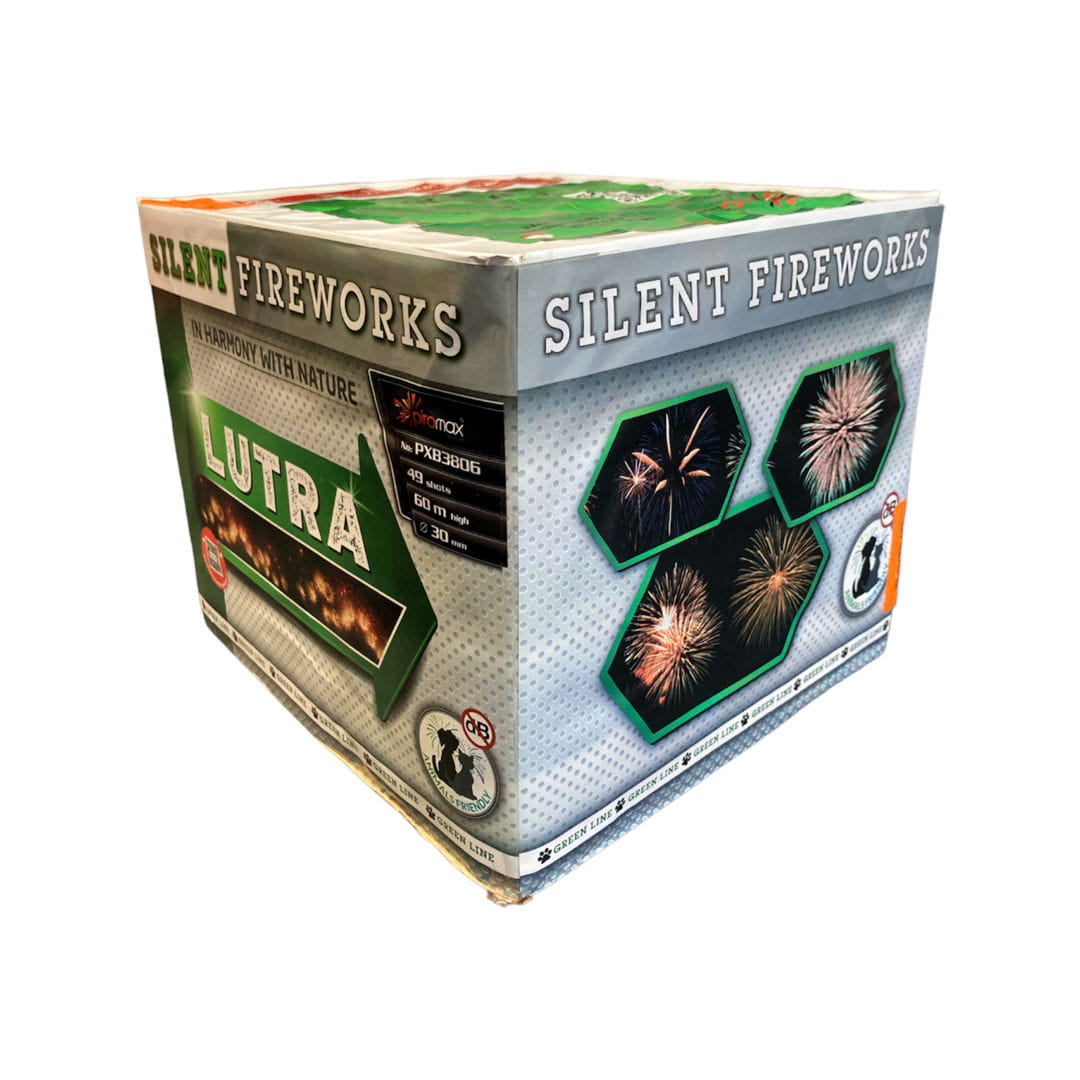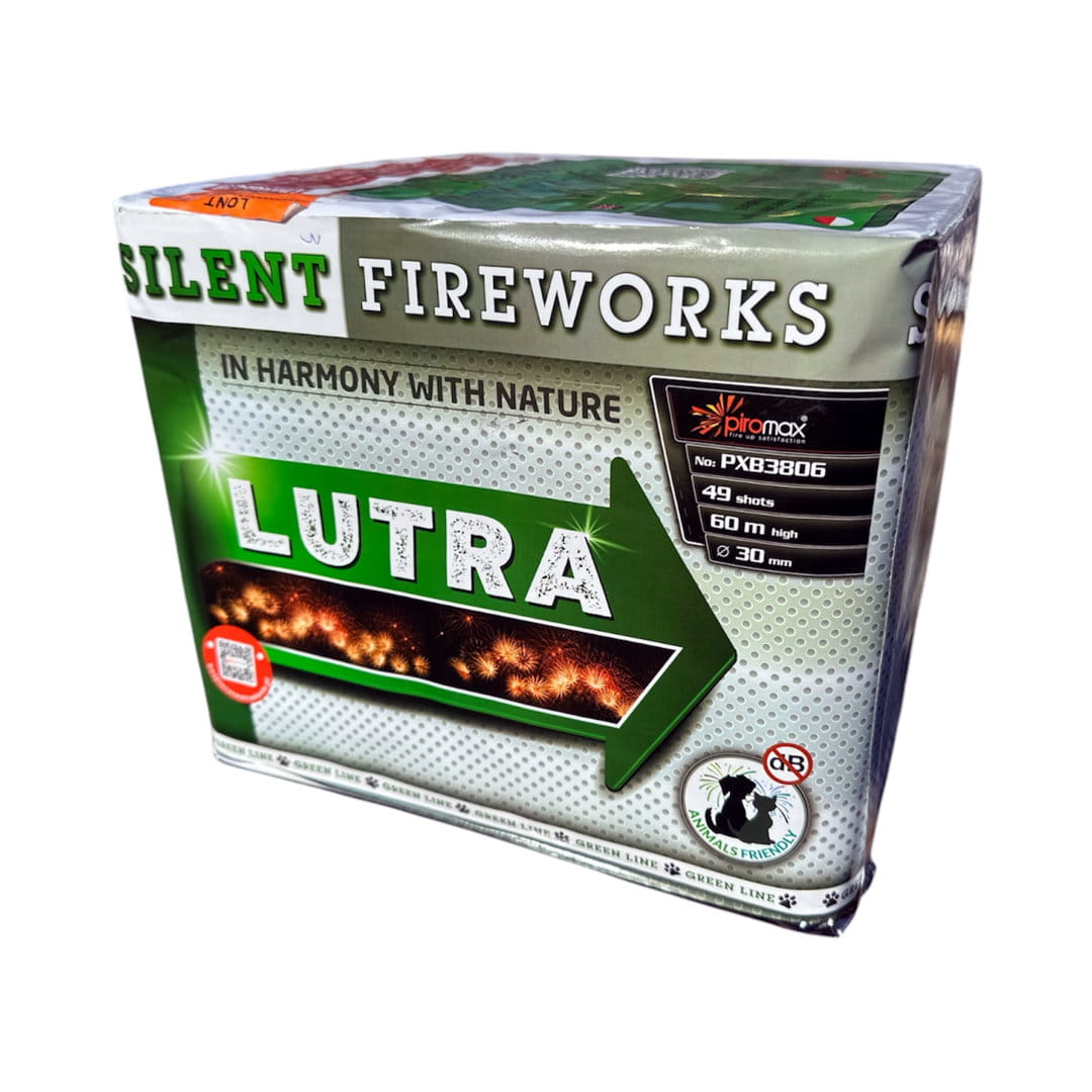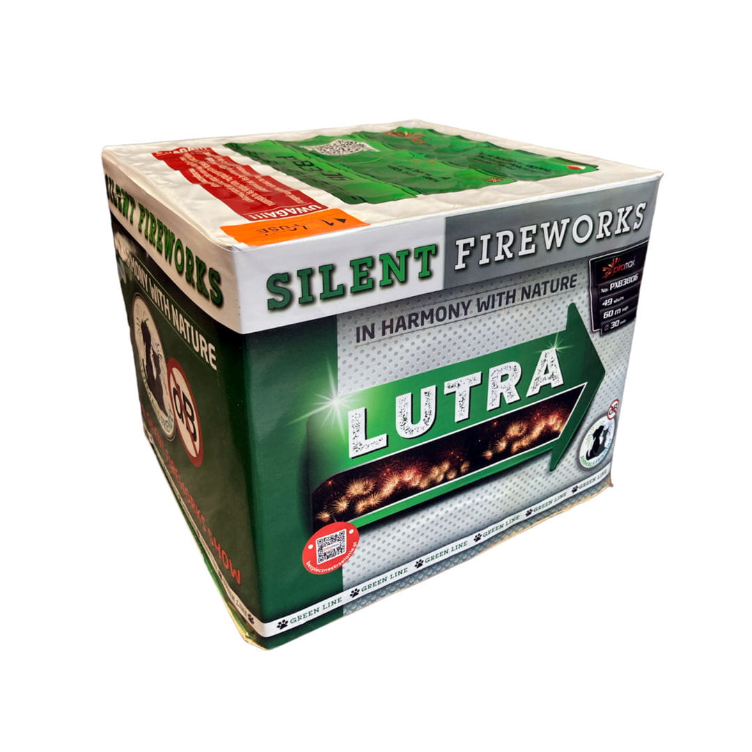 Wyrzutnia Lutra (kod produktu: PXB3806) od dystrybutora pirotechniki "Piromax" zawiera 49 ładunków o niskiej akustyce wystrzału.