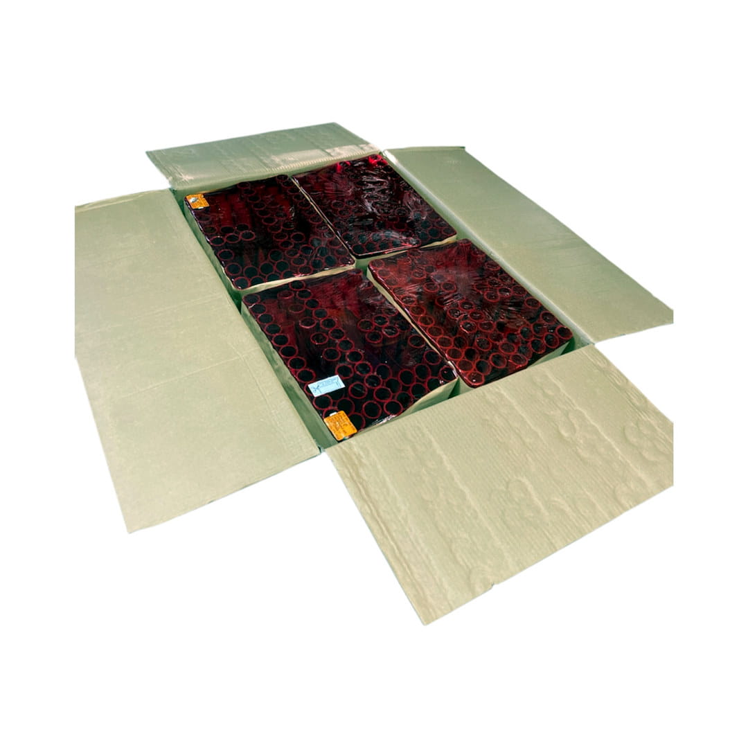 Potężny komplet połączonych wyrzutni serii Profi Show (kod produktu C2563XMF/C). Zestaw ten prezentuje efekty w długim czasie wynoszącym ponad 3,5 minuty! Produkt ten zawiera baterie połączone ze sobą, dzięki czemu użytkownik musi podpalić lont tylko jeden raz.