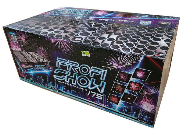 Potężny komplet połączonych wyrzutni serii Profi Show (kod produktu C175MF/C). Zestaw ten prezentuje efekty w długim czasie wynoszącym około 2 minut! Produkt ten zawiera łądunki o kalibrze 30 i aż 50 mm!