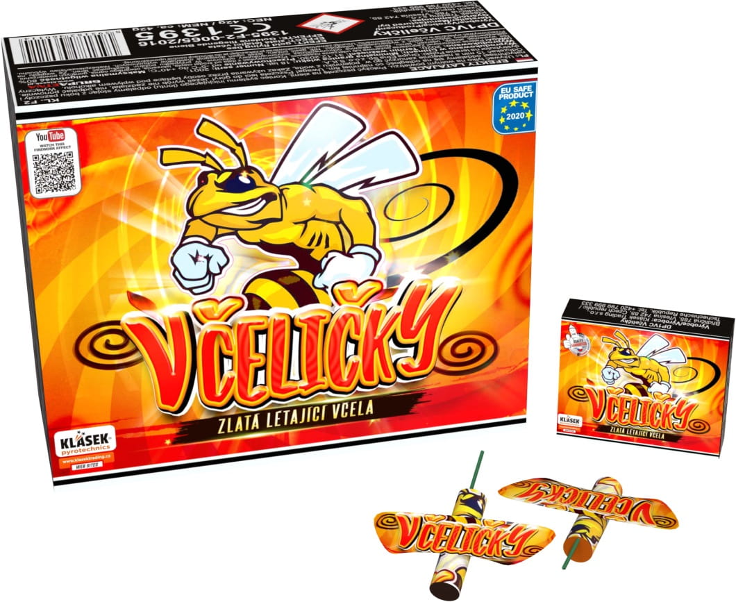 Mały zestaw 5 pszczółek, które widowiskowo wirują a następnie wzbijają się do góry pozostawiając za sobą snop złotych iskier.