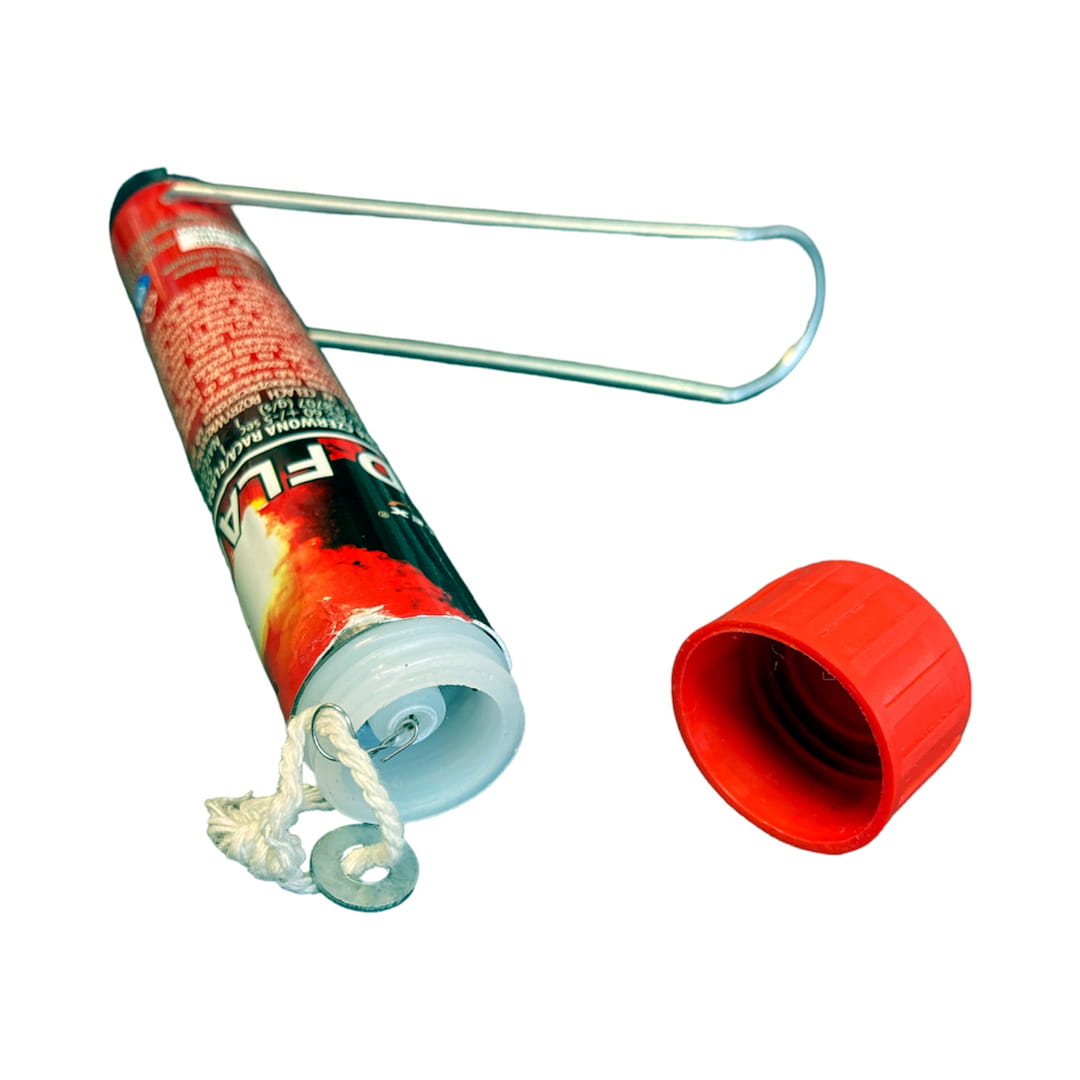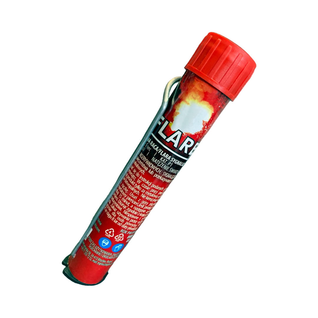 Wysokiej jakości raca świetlna w solidnym metalowym korpusie, emitująca jaskrawy płomień w kolorze czerwonym. Efekt prezetnuje się bliźniaczo do morskich rac sygnalizacyjnych wykorzystywanych podczas sytuacji alarmowych na otwartych akwenach. W celu użycia flary świetlnej, należy rozłożyć metalową rączkę oraz pociągnąć za sznurek inicjujący efekt. Czas działania flary świetlnej wynosi ok. 60 sekund. Produkt dedykowany dla kibiców do oprawy wydarzeń sportowych lub pokazów plenerowych.