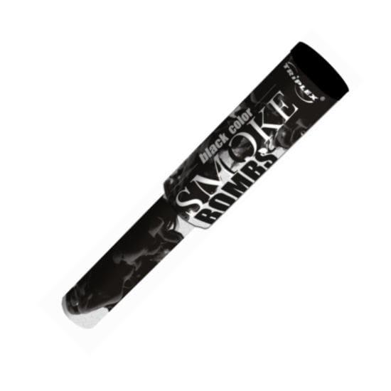 Świeca dymna z serii Smoke Bombs z rączką od producenta TRIPLEX w kolorze czarnym. Świeca dymna odpalana za pomocą wygodnej zawleczki. Produkt generuje gęsty dym w kolorze czarnym w czasie ok. 1 minuty. Masa netto mieszaniny pirotechnicznej (NEC) wynosi 28 g.