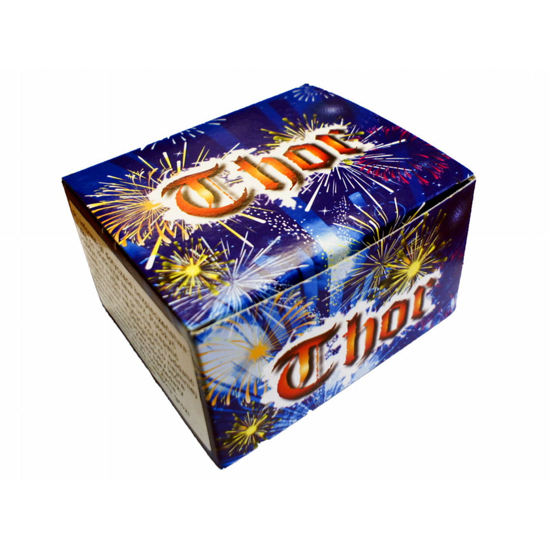 Zestaw głośnych petard lontowych prod. włoskiej z fabryki Giuseppe Di Marco. Petardy Thor pomimo niewielkich rozmiarów, gwarantują głośny huk. Opakowanie zawiera 30 szt. Łączna masa netto mieszaniny pirotechnicznej (NEC) wynosi 3 g (0,15 g/szt).