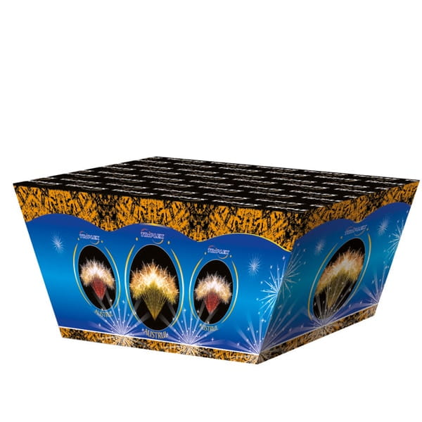 Bateria serii profesjonalnej, która dostępna jest dla każdego bez dodatkowych pozwoleń. Pomimo, że zawiera ładunki małego kalibru i jednolitą kompozycję, to zdecydowanie na żywo zachwyci niejednego widza. Złote brokatowe ogony wznoszona są w niezwykle widowiskowy sposób.